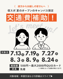 【オープンキャンパス】遠方の方必見!交通費補助!