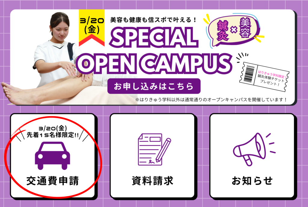 はりきゅう学科以外の学科は通常通りのオープンキャンパスを開催しております!