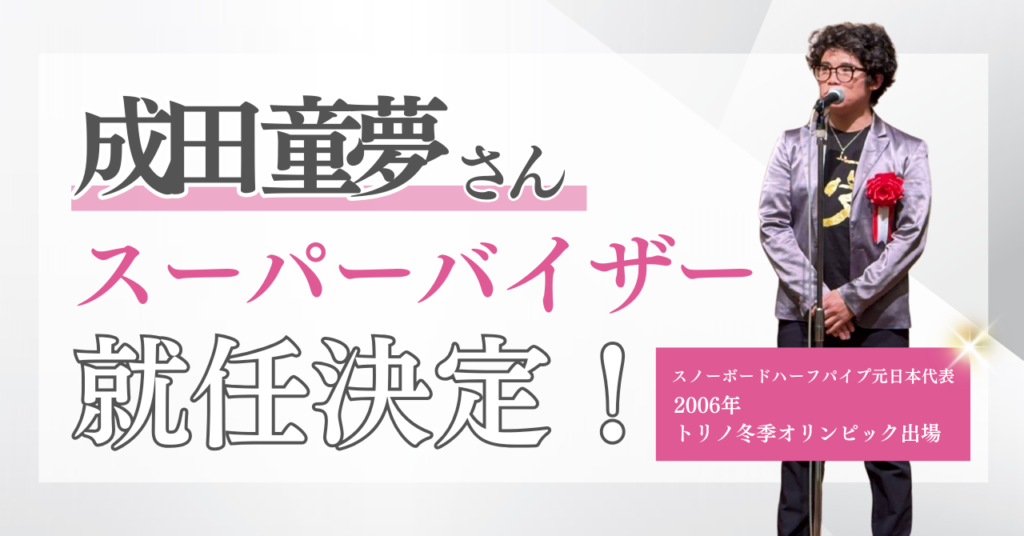 成田童夢さんは、スノーボードハーフパイプの元日本代表として活躍し、