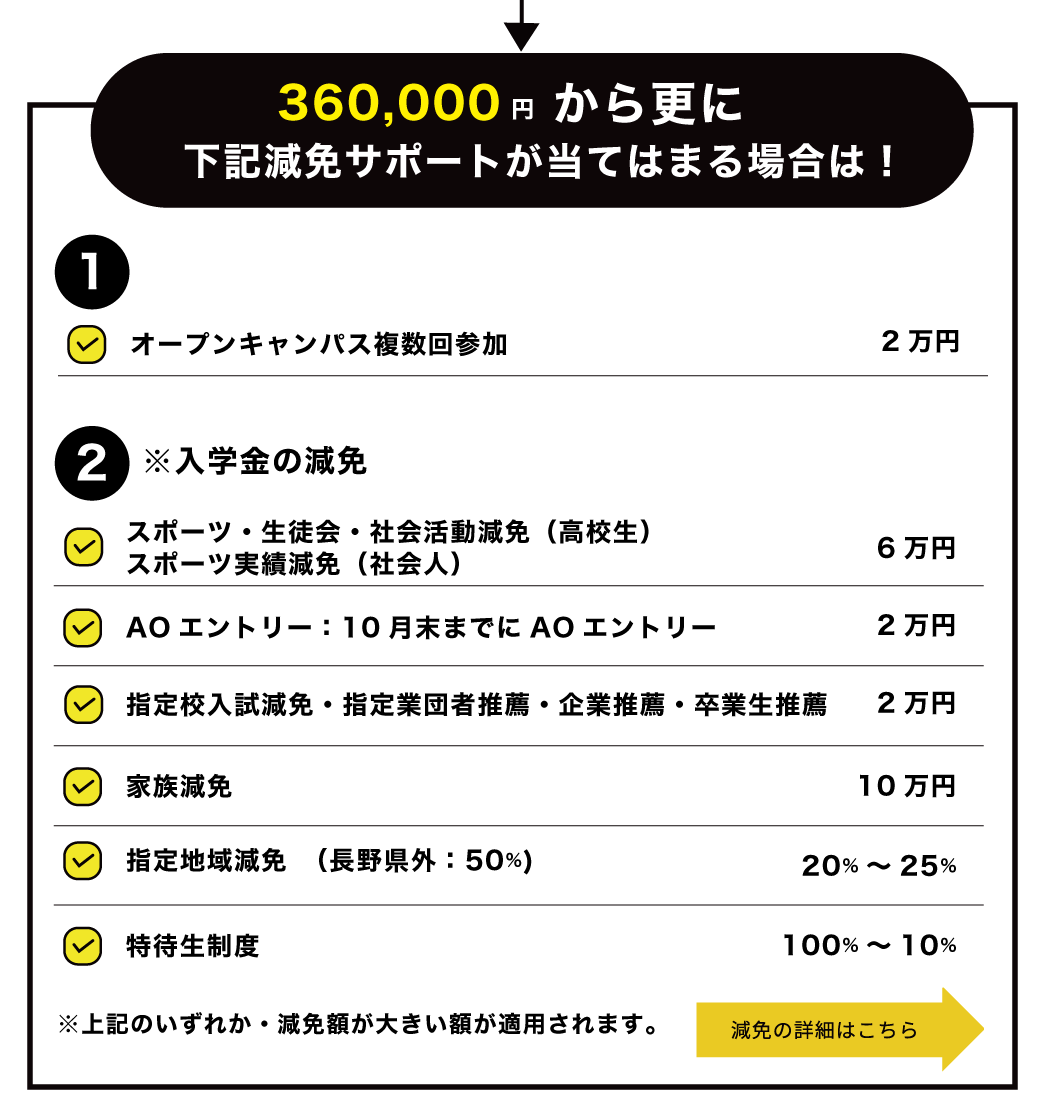信州スポーツ医療福祉専門学校では、返還免除の学費サポートが受けられます。