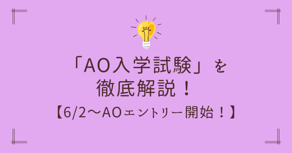 「AO入試」を徹底解説✨【6/2~AOエントリー開始!】
